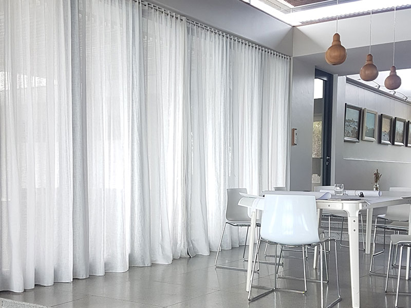 Sheer curtains with small pinch pleat